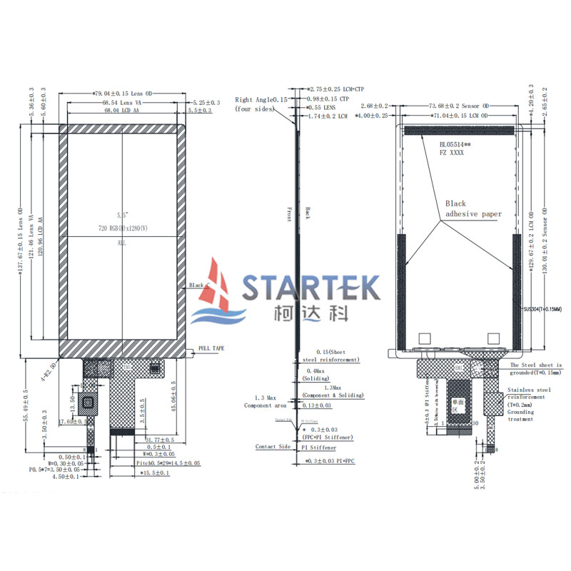 1. Product name: 5.5 inch 720x1280 IPS TFT LCD with MIPI interface module with capacitive touch panel OCA bonding