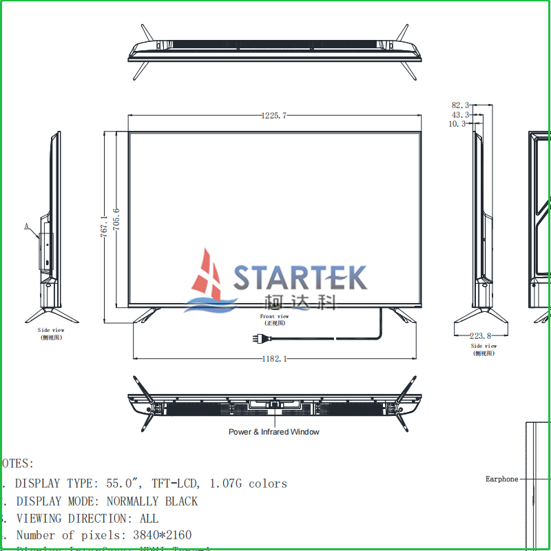 55.0 inch 3840x2160 monitor display full color 1.07G supports HDMI interface ports to Android/Linux/Raspberry PI