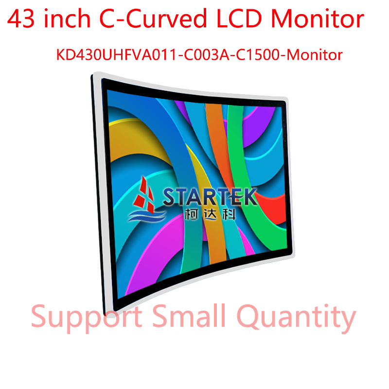 KD430UHFVA011-C003A-C1500-Monitor is a 43-inch C-curved R1500 capacitive touch monitor by Shenzhen Startek Electronic. It uses a TFT-LCD panel with 3840x2160 resolution, supporting 1.07 billion colors and 10-point touch. It has VESA and table base mounting, has HDMI and VGA ports, with 135W operating power, <1W standby power, 50,000-hour backlight life. It has stock and supports small-quantity purchase.