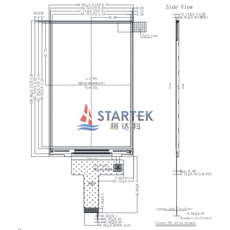 1. Product name: 4.5 inch 480x854 TFT LCD MIPI interface ST7701S full viewing angle IPS display without touch