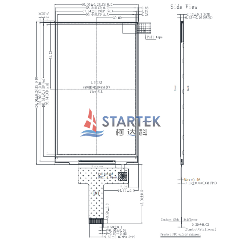 1. Product name: 4.5 inch IPS 480x854 TFT LCD MIPI interface ST7701S full viewing angle TFT display without touch