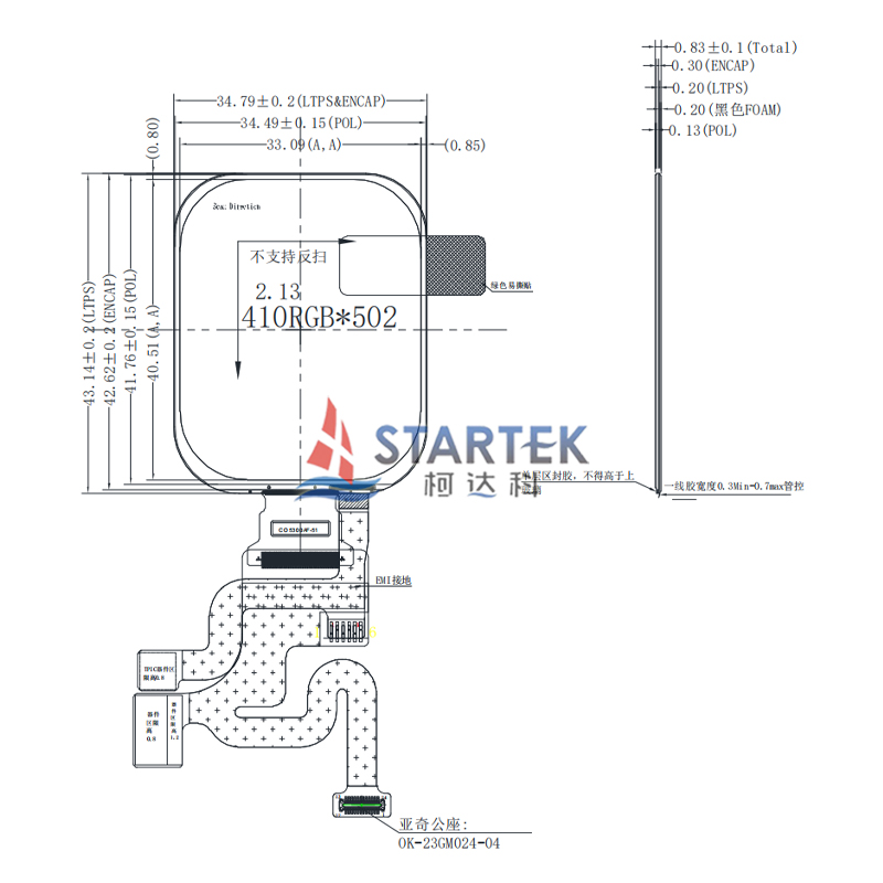 1. Product name: 2.06 inch 16.7M colors OLED 410x502 MIPI Interface LTPS-AMOLED module