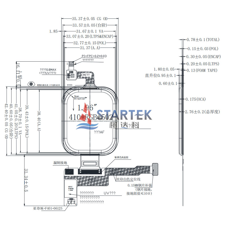 1.96 inch LTPS OLED 410x502 QSPI Interface CO5300AF-46 Driver IC LTPS-AMOLED module with Touch