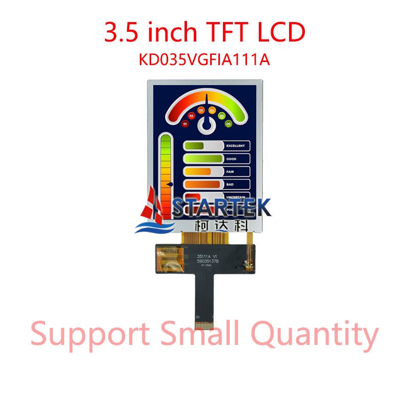 KD035VGFIA111A is a 3.5-inch TFT-LCD module. It features a resolution of 480(RGB)×640 pixels, supporting 16.7 million colors. Adopting a transmissive/normally black display mode and VA viewing angle technology, it is equipped with an ILI9806 controller and MIPI interface, along with a 6-chip LED backlight. The typical brightness is 420cd/m², and the backlight lifespan reaches 50,000 hours. With dimensions of 64853.1mm and a weight of approximately 35g, the module operates within a temperature range of -20~+70℃ and can be stored at -30~+80℃. Having undergone multiple reliability tests, it delivers stable performance and is suitable for various electronic devices.