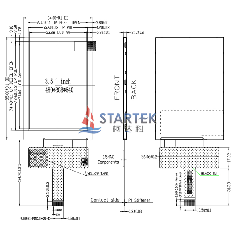 HomeProduct >  3.5 inch 480x640 ILI9806E LCD MIPI interface LCD module with full viewing angle