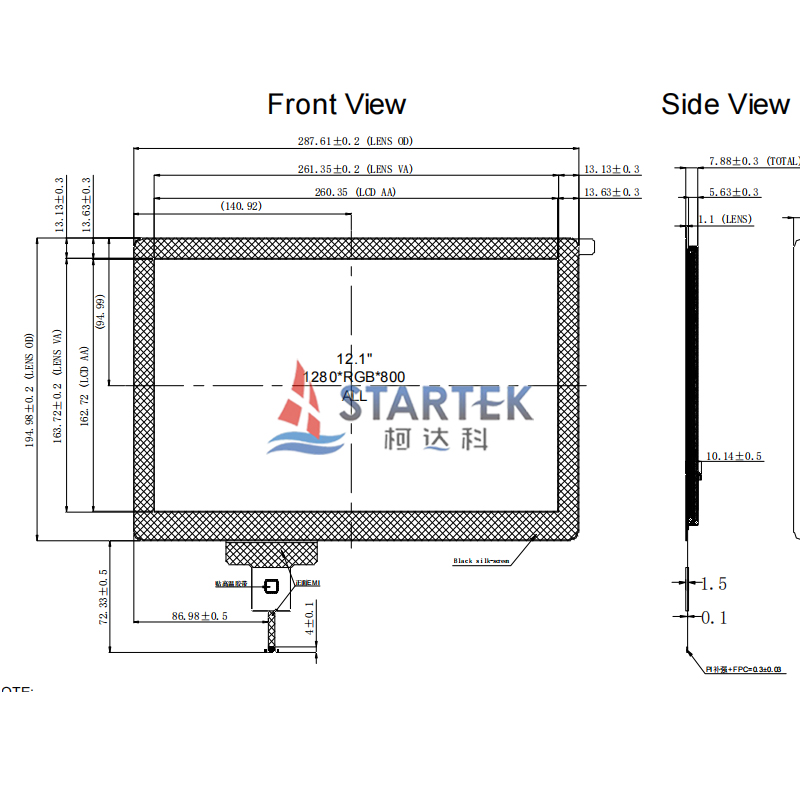 1. Product name: 12.1 inch 1280x800 IPS LVDS interface high brightness TFT LCD module with capacitive touch panel