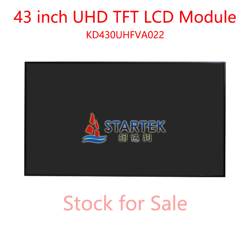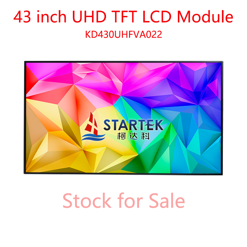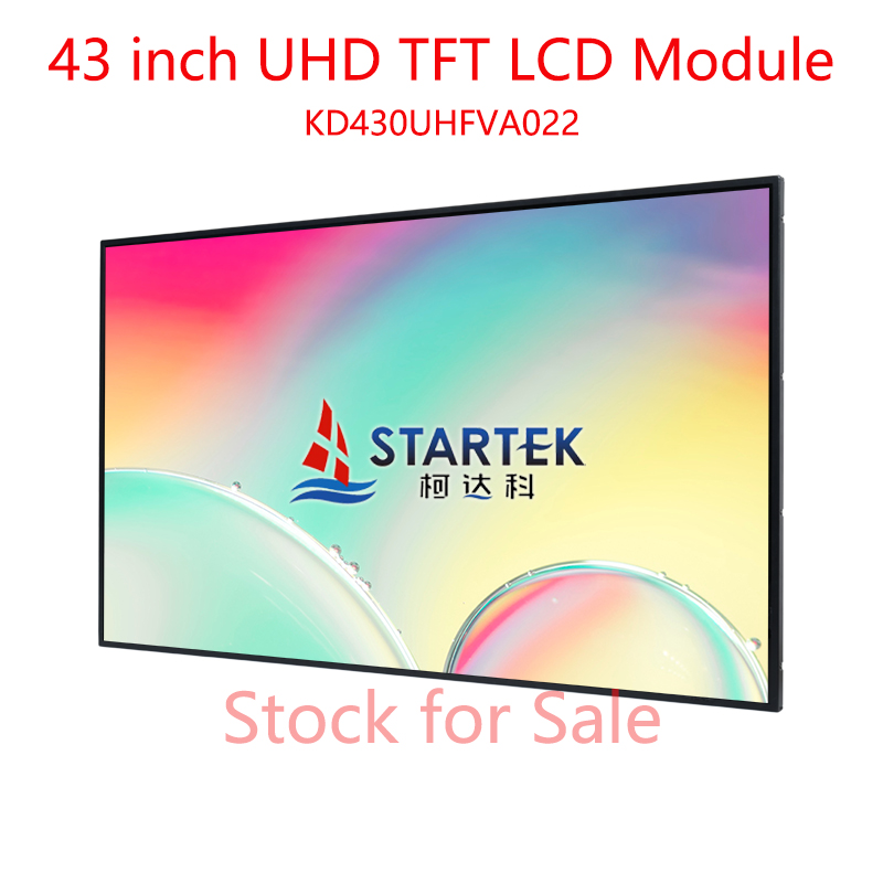 KD430UHFVA022 is a 43-inch UHD TFT-LCD open cell module developed by Shenzhen Startek. It features a 3840×2160 resolution and ADS technology, equipped with an 8-lane V-by-One interface and DE only mode. The module supports 1.07 billion colors, with 8ms typical response time, 250cd/m² typical brightness, and 1200:1 contrast ratio, offering near full viewing angles. Powered by 12V, it has a typical power consumption of 9.6W. The LED backlight delivers a 30,000-hour lifespan. It is RoHS compliant, supports 7×24-hour operation, and is suitable for UHD TVs and industrial control displays.