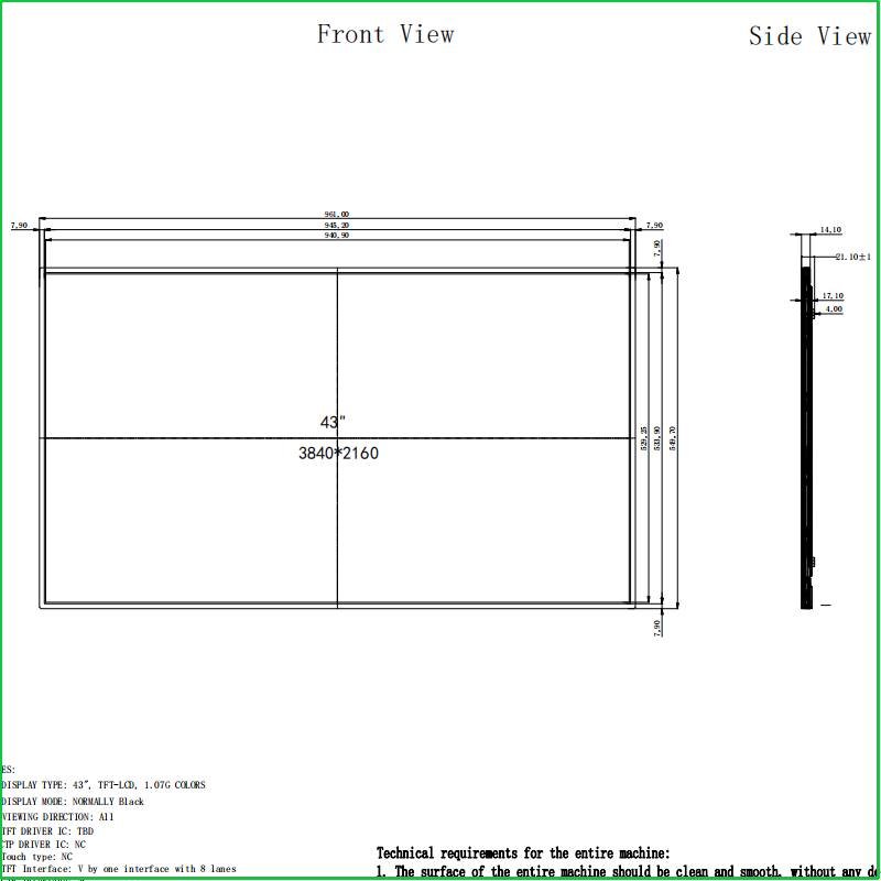 • 43 inch 3840x2160 TFT LCD
