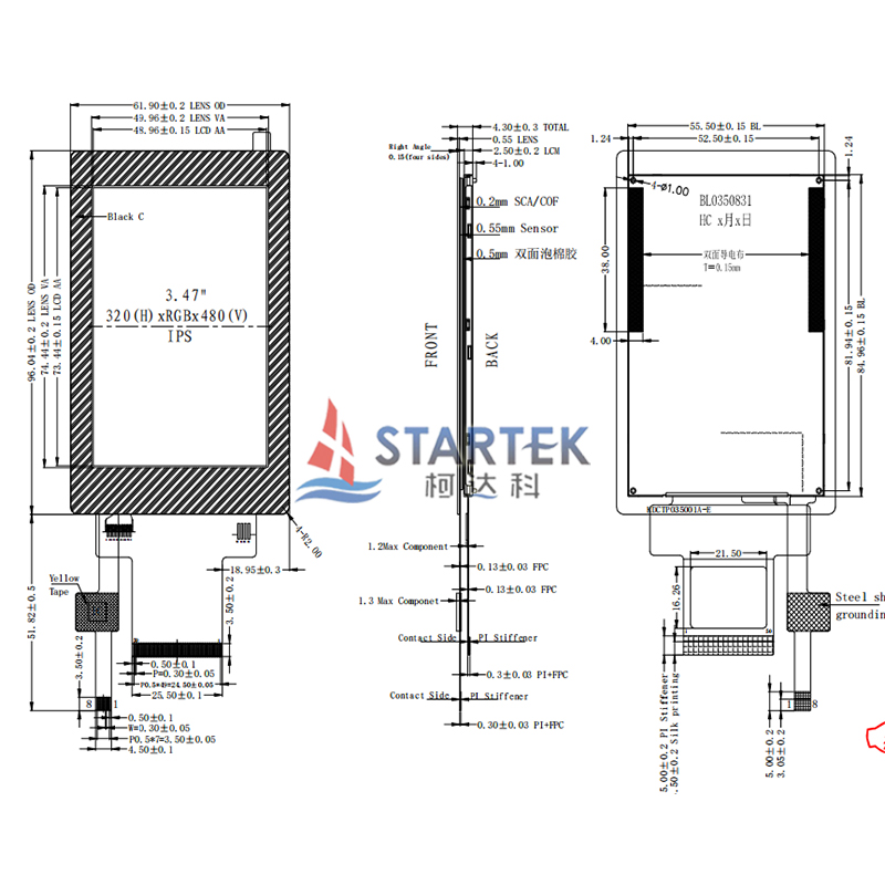 3.5 inch 320x480 ST7796I VA LCD with capacitive touch panel